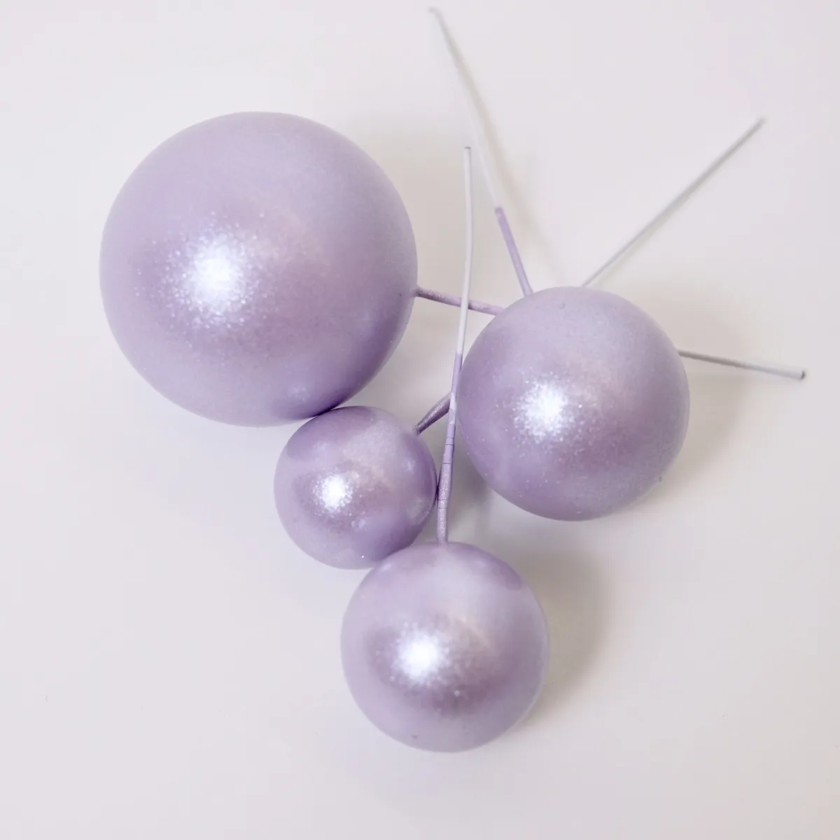 Die runden Bubbles Einstecker sind aus Kunststoff gefertigt und sitzen auf stabilen Drähten, die sie fest auf deiner Torte sitzen lassen. Mit dem Set bekommst du 4 Bubbles Einstecker in verschiedenen Größen, damit du dich beim Dekorieren kreativ austoben und nach deinen Wünschen kombinieren kannst. Von jedem Durchmesser der Kugeln ist ein Einstecker im Set enthalten. Damit kannst du Torten, Kuchen und mehr zu jedem Anlass kreieren – vom Geburtstagskuchen bis zur Hochzeitstorte.