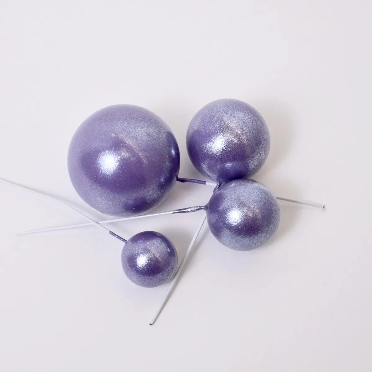 Die runden Bubbles Einstecker sind aus Kunststoff gefertigt und sitzen auf stabilen Drähten, die sie fest auf deiner Torte sitzen lassen. Mit dem Set bekommst du 4 Bubbles Einstecker in verschiedenen Größen, damit du dich beim Dekorieren kreativ austoben und nach deinen Wünschen kombinieren kannst. Von jedem Durchmesser der Kugeln ist ein Einstecker im Set enthalten. Damit kannst du Torten, Kuchen und mehr zu jedem Anlass kreieren – vom Geburtstagskuchen bis zur Hochzeitstorte.
